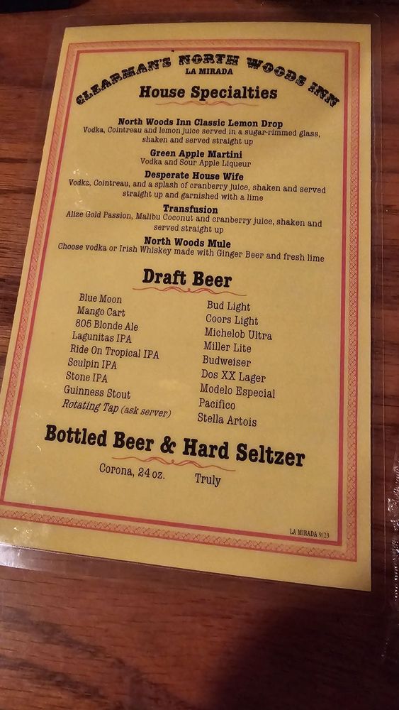 Clearman’s North Woods Inn, La Mirada Menu (Update 2025)